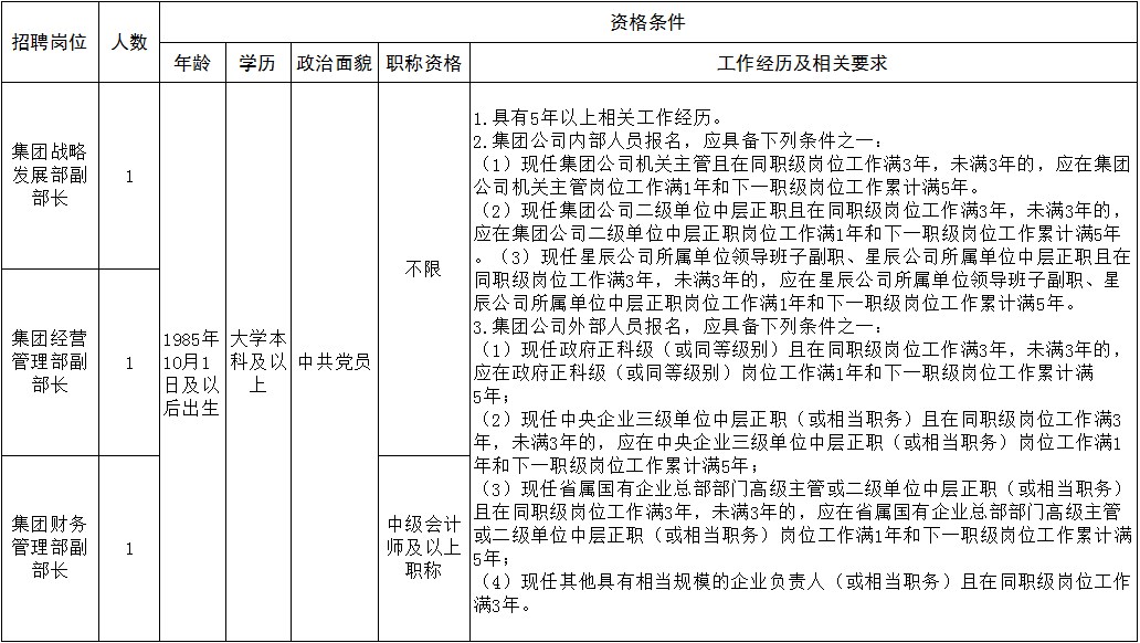 現根據工作需要,經研究,面向集團公司內外部公開招聘集團公司機關部門副職3名。現將有關事項公告如下: