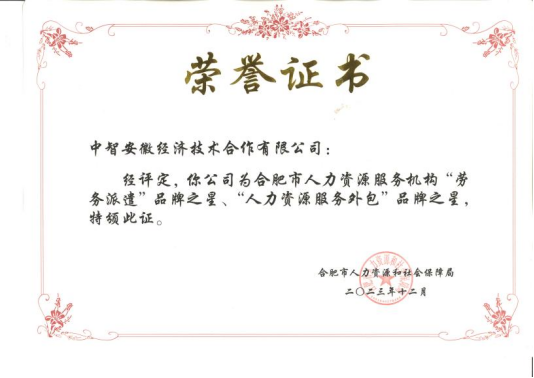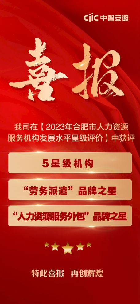 近日,合肥市人力資源和社會保障局公布了2023年度合肥市人力資源服務(wù)機構(gòu)星級評定結(jié)果,中智安徽公司獲評5星級人力資源服務(wù)機構(gòu),并榮膺“勞務(wù)派遣”與“人力資源服務(wù)外包”品牌之星。此次評定對參評企業(yè)的基本實力、信用體系、管理水平、發(fā)展?jié)摿σ约吧鐣暙I等多個維度進行了考量,獲此殊榮是對中智安徽公司的認可和鼓勵。