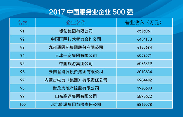 會上,中國工程院院士、中國企聯特邀副會長王基銘發布了2017中國企業500強、中國制造業企業500強、中國服務業企業500強、中國100大跨國公司榜單,并發布了2017年度中國企業效益200佳榜單。這是中國企業聯合會、中國企業家協會自2002年以來第16次向社會發布中國企業500強榜單及分析報告。2017中國企業500強入圍門檻提高至283.11億元,較上年大幅提升39.65億元,提升幅度是自2002年首次發布中國企業500強以來之最;營業收入總額首次突破60萬億元,達64.00萬億元,較上年中國企業500強增長7.64%,扭轉了連續兩年下滑的態勢;資產總額達256.13萬億元,較上年500強資產總額增長14.76%,連續兩年增長。從趨勢上看,近兩年的資產總額增長速度扭轉了自國際金融危機以來的波動式下跌趨勢,有企穩回升跡象。中國服務業企業500強榜單規模持續擴大,營收總額突破30萬億元,增速連續5年超過制造業500強。目前,我國經濟已經從“工業”時代逐漸向“服務業”時代過渡,服務業已然成為經濟增長的主要動力,預示著在未來服務業的發展有更好的基礎條件。