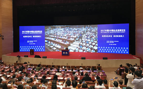 2017年9月10日,由中國企業聯合會、中國企業家協會主辦的2017中國500強企業高峰論壇在南昌舉行。江西省委書記、省人大常委會主任鹿心社出席高峰論壇,江西省委副書記、省長劉奇,國務院國資委副主任劉強,工信部黨組成員、總工程師張峰,世界知識產權組織副總干事王彬穎出席并致辭,中國企業聯合會、中國企業家協會會長王忠禹做大會主題報告。來自全國各地的企業家和大企業代表、跨國公司代表、專家學者、政府部門和新聞單位的代表共1000余人參會。大會由中國企業聯合會、中國企業家協會常務副會長兼理事長朱宏任主持,大會主題為“創新敢為擔當 做優做強做大”,旨在引導廣大企業深入貫徹落實習近平總書記系列重要講話精神和黨中央治國理政新理念新思想新戰略,以推進供給側結構性改革為主線,以提高發展的質量和效益為主攻方向,改善供給質量、增強發展后勁,以更大的決心和勇氣推進改革創新,不斷取得企業發展新突破。
